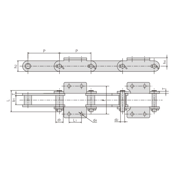 - Inner chain plates are set between adjacent pin ends, while outer chain plates connect the ends of inner chain plates for reinforced strength.