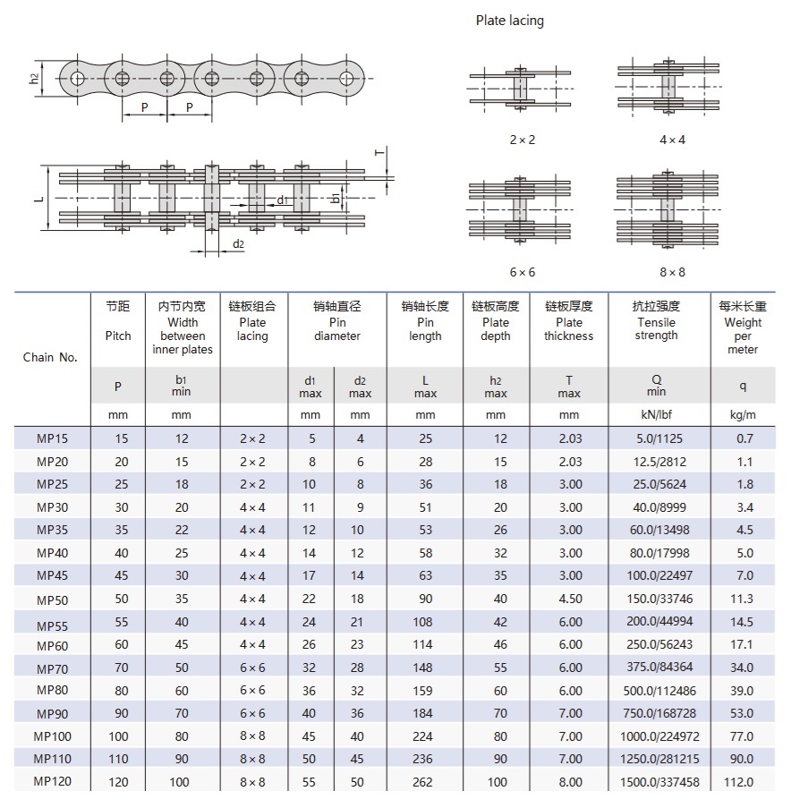 This kind of chain is mainly used in forklift trucks, stacker cranes and other specialized equipment, and its reliability is directly related to major property and personal safety.
